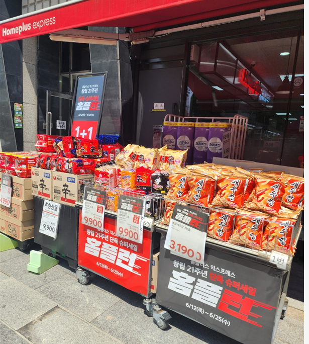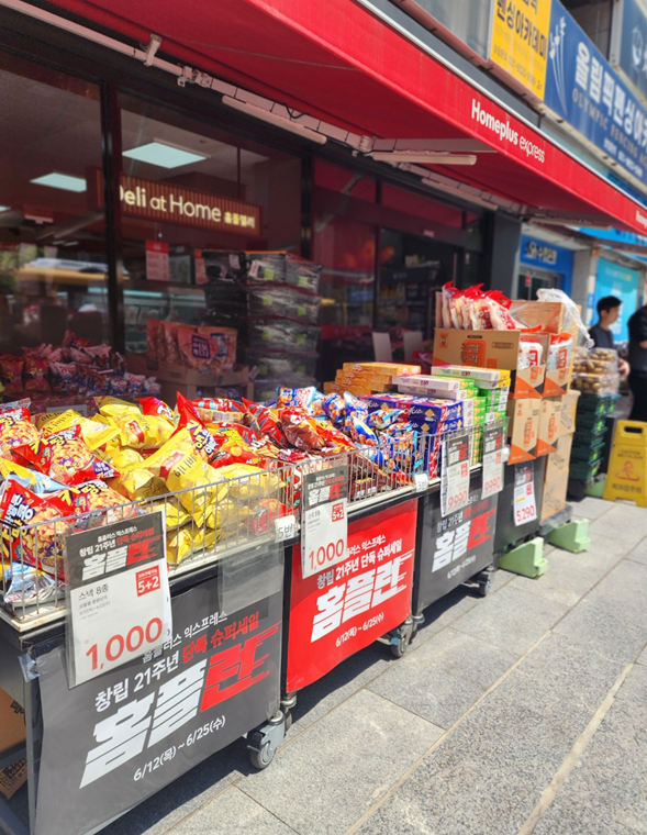 - 매일매일 럭키데이: 온라인몰에서 진행되는 요일별 또는 특정기간동안의 이벤트. 매일 할인되는 상품이 다르므로 홈플러스앱이나 온라인몰에 접속해서 확인.